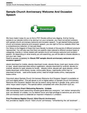 Read SAMPLE CHURCH ANNIVERSARY WELCOME AND OCCASION SPEECH Doc Library Genesis